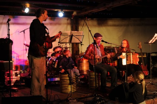 Allerdings nass. Und wie aus Schaffeln. Was allerdings unter dem gottseidank überdachten Zuschauerbereich zu einem gemütlichen Gemeinschaftskuscheln geführt hat – fast wie in alten Jugendlagertagen vor’m Lagerfeuer. Nur dass das Feuer, das diesmal abgebrannt wurde, ein musikalisches war.
